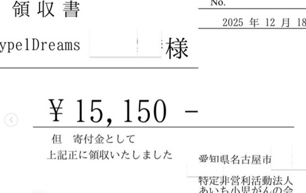 以上を合わせた 15,150円 を、「あいち小児がんの会」さまへ寄付させていただきました。レモネードスタンド活動への尊敬と、小児がんのお子さま・ご家族への応援の気持ちを込めて、少しでもお役に立てれば幸いです。